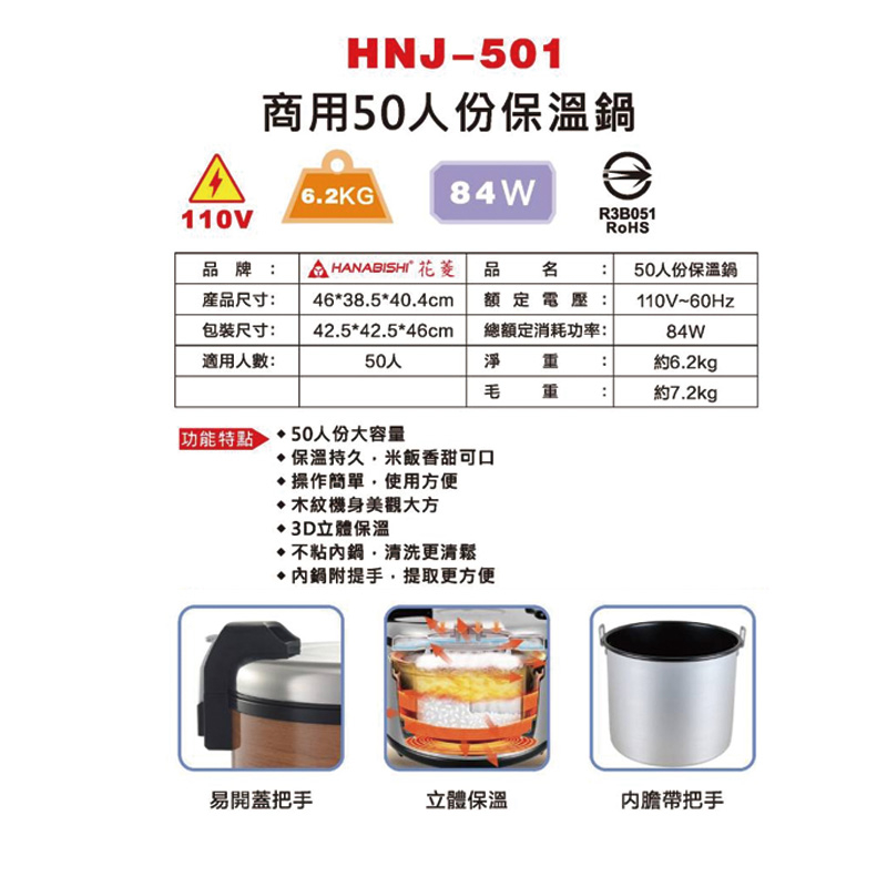 歌林50人份保溫鍋 110V/60Hz/84W